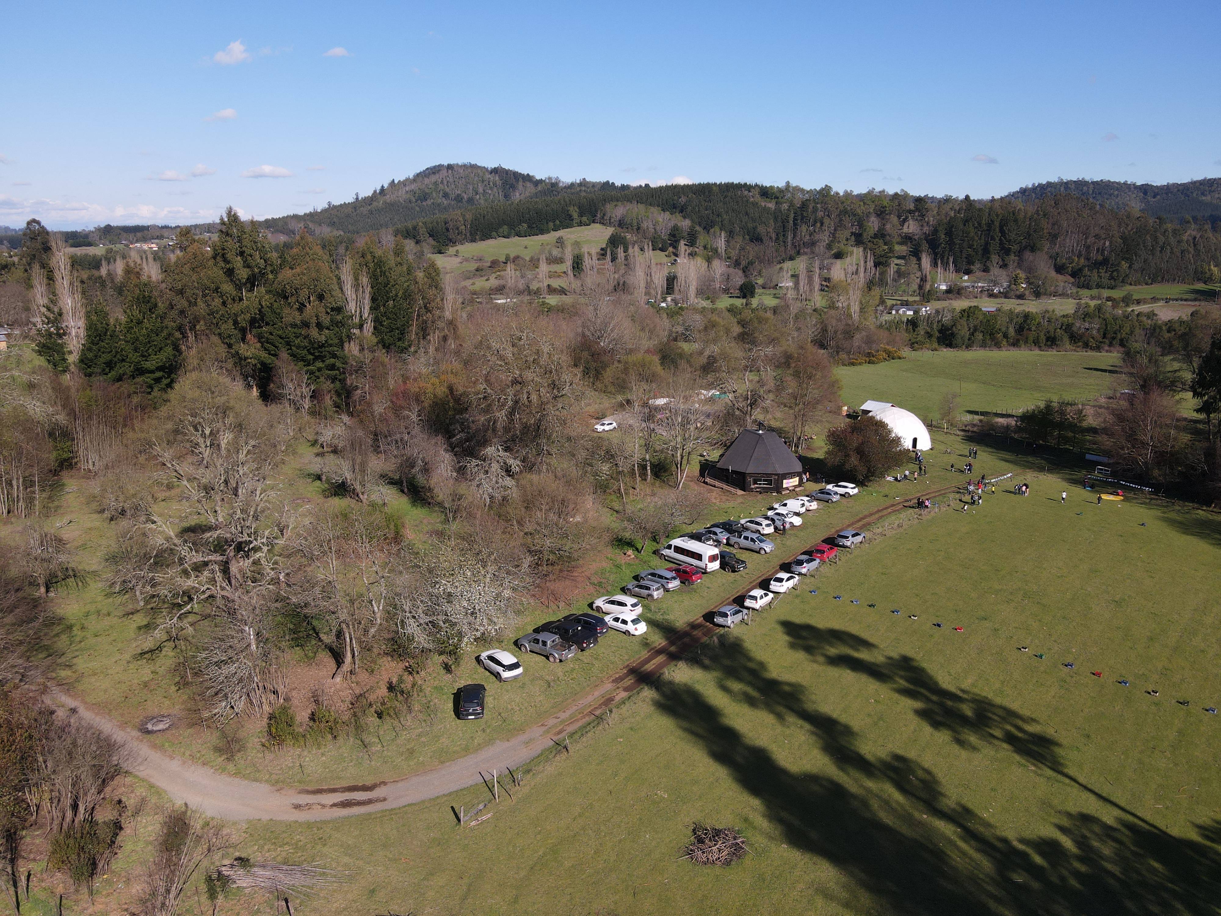 Espacio Txawün inició como una propuesta itinerante que recorría barrios y sectores de la comuna de Temuco hasta que hace un tiempo se establecieron en el sector de Niágara, Padre Las Casas. En sus espacios, entre los que destaca una carpa domo habilitada para las artes escénicas, se presentan obras que fusionan disciplinas como el teatro, el circo, la danza, la música y las artes vivas en general. En la imagen, el domo y el entorno de Espacio Txawün. Foto: Hardy Cotal.