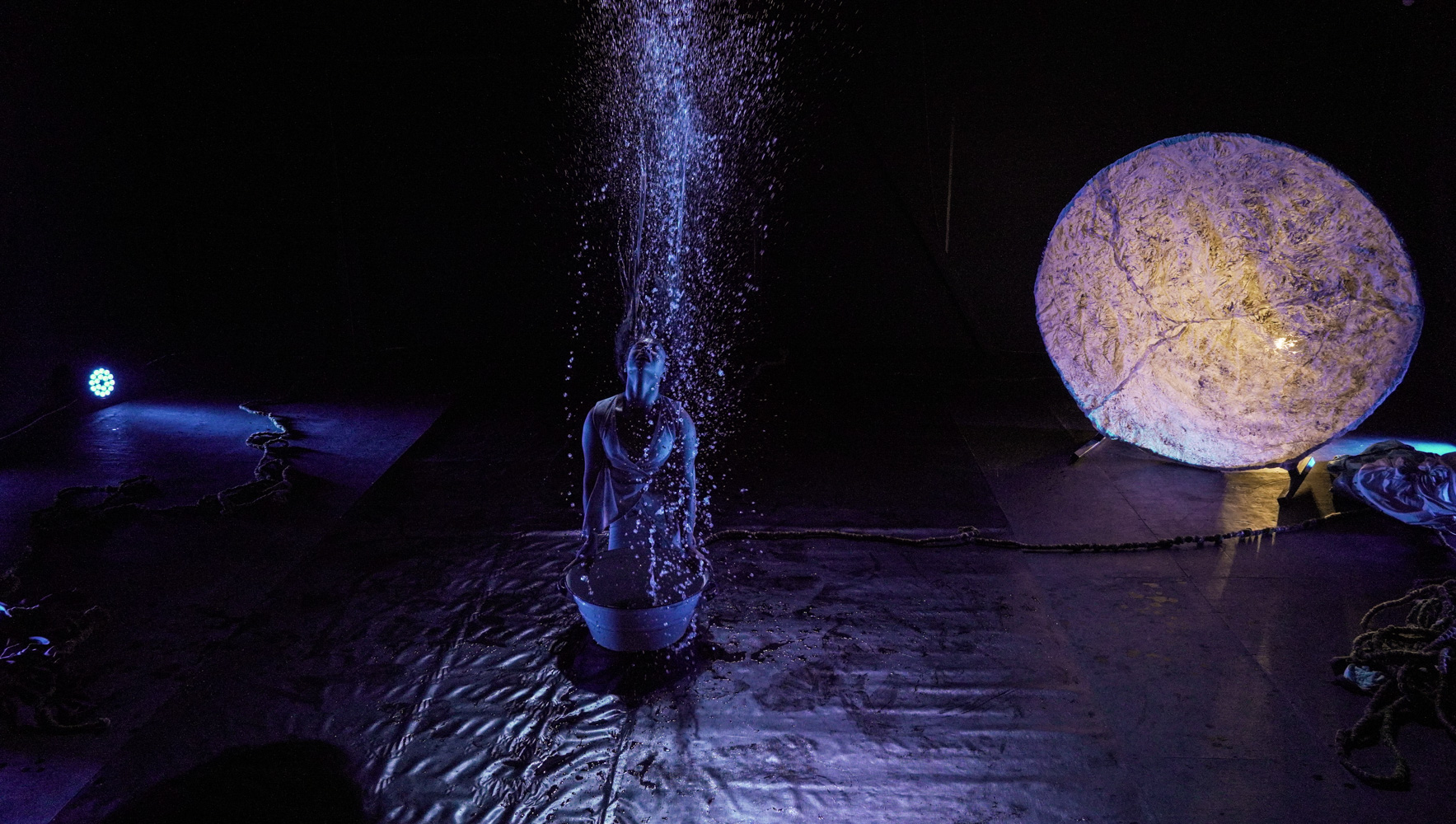 El proyecto de Trashumantes fue iniciado por dos egresadas de la desaparecida carrera de Teatro de la Universidad Mayor de Temuco y hoy lo conforma un equipo de nueve personas. Instalados en una casa sobre avenida San Martín, recientemente construyeron una carpa en el patio que les permite recibir digna y apropiadamente obras de las artes escénicas y a un público de hasta 120 personas. En la imagen, una función de Bajo la misma luna de la compañía Circo Lacustre. Foto: Ventvnv.cl/Trashumantes.