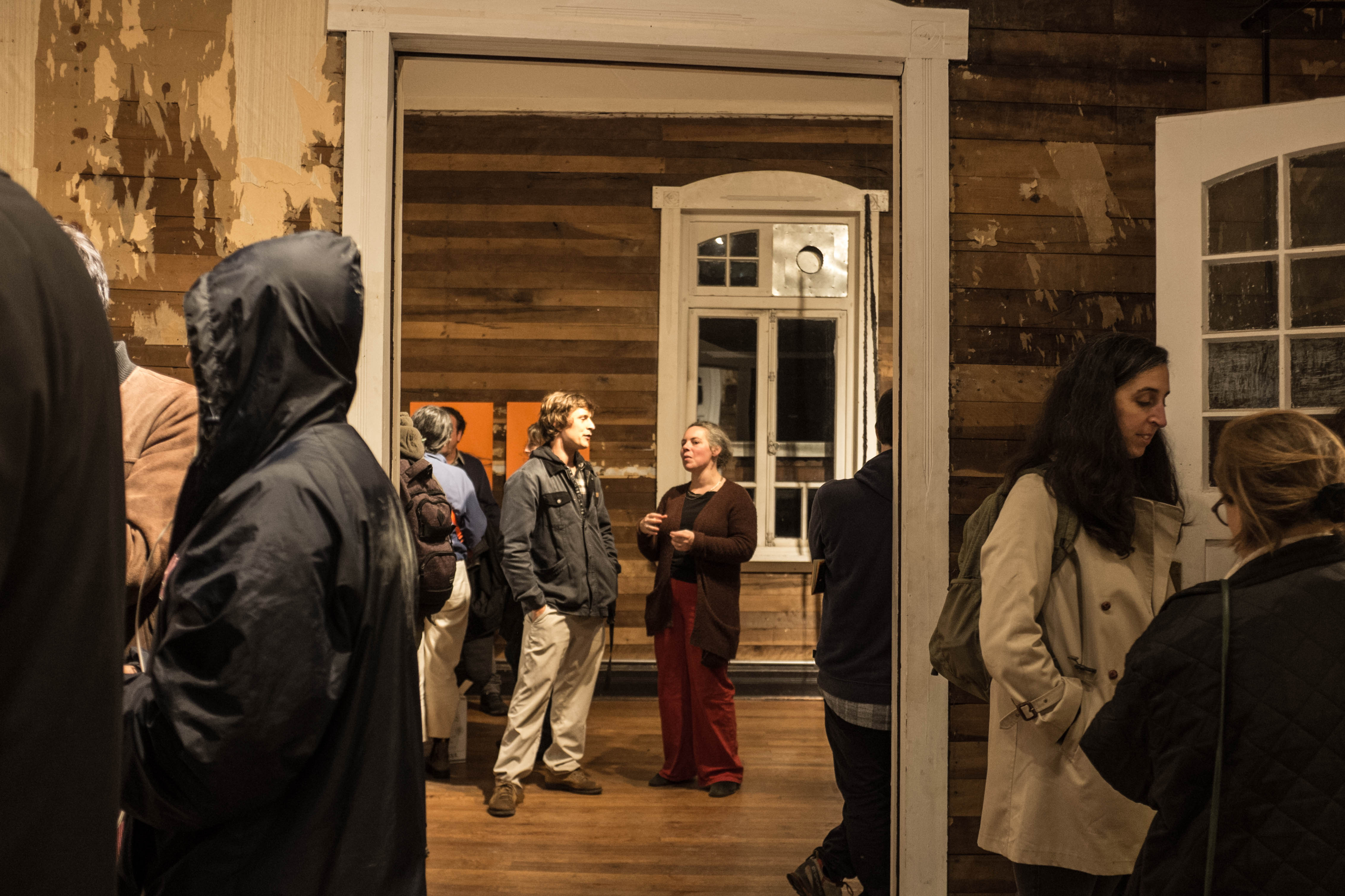 Los amplios y diversos espacios con que cuenta Casa Varas les han permitido organizar y recibir desde conciertos, entre los que el jazz y la música experimental tienen preponderancia, hasta exposiciones colectivas. En el segundo piso funcionan las oficinas y las habitaciones para residencias. En la imagen, Ecologías del fuego, inauguración de la muestra con los resultados de la residencia del mismo nombre organizada por la Fundación Mar Adentro. Foto: Magdalena Aguirre.